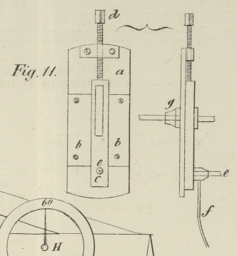 beiden aufgeschraubten Stücken b der Schieber c. Mittelst der Schraube d,