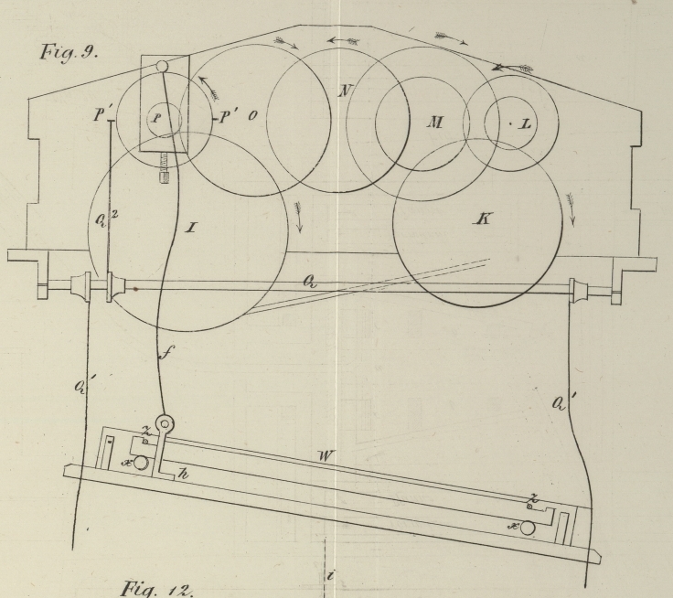Excentric anzieht, die Entfernung vom Mittelpunkt des Rades P größer und die Neigung der schiefen Ebene dadurch eine stärkere wird,