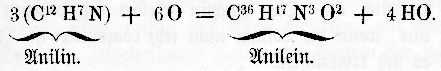 daß 3 Atome Anilin und 6 Atome Sauerstoff 1 Atom Anilein und 4 Atome Wasser geben,