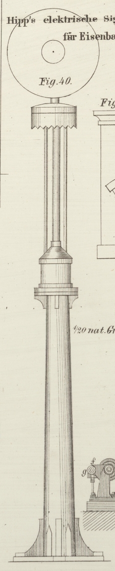 | Titel: | Beschreibung einer elektrischen Signal-Scheibe für Eisenbahnen; construirt von M. Hipp, Director der Fabrik telegraphischer und elektrischer Apparate in Neuenburg (Schweiz). |