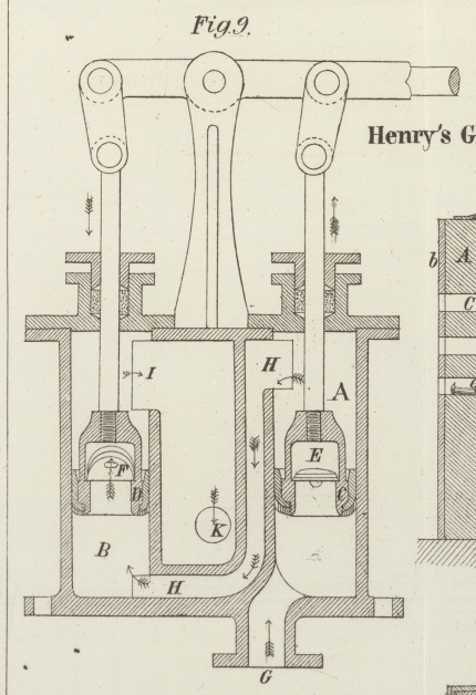 Cylindern bewegter Kolben erzeugt; diese führen zwei Ventile, welche also leicht