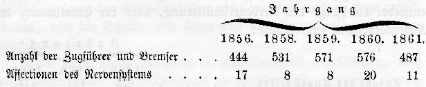 von einer Nervenaffection hervorgebracht worden. Von 15 Todesfällen waren 9 durch