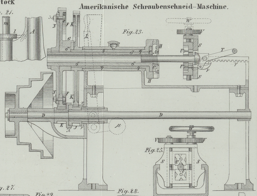 stellt Seller's Maschine im Längendurchschnitte und Fig. 24 (vom