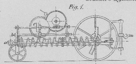 ruht, von dem aus die verschiedenen Linien ausgehen. Ein bei n befindlicher kleiner Ausrückhebel setzt die Welle d außer Verbindung, so daß, wenn die Pferde zu ziehen anfangen, das große