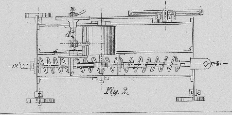 regelmäßigem Betrieb ist. Sobald dieß der Fall ist, wird mittelst des Hebels k der Mechanismus in Betrieb gesetzt. Das Wurmrädchen