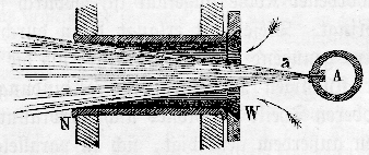als eine kegelförmige Garbe direct durch den hohlen Stehbolzen W, N ein, an dessen Kopf man zu diesem Zwecke eine