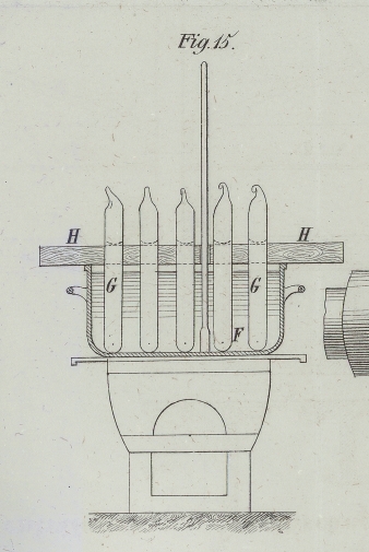 man, daß die anfänglich flüssige Masse, welche in den Röhren und im Kolben enthalten