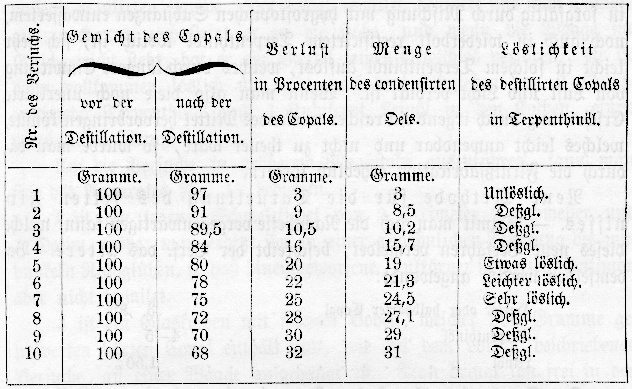 Irdessen ist zu erwähnen, daß Copal, welcher 10 Proc. seines Gewichtes durch