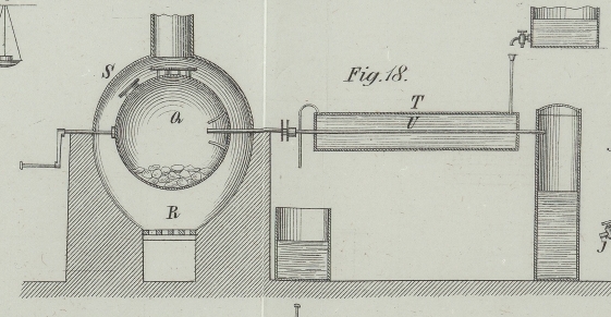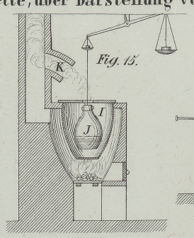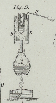 Apparat bestand aus einer kleinen gläsernen Retorte für den zu schmelzenden Copal