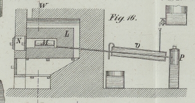 mittelst einer Kurbel bewegt werden. R ist der Ofen zum