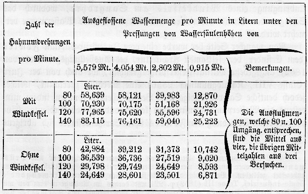 Diese Maschine sollte bei Anwendung eines Mundstücks von 1 Zoll lichter Weite pro Minute 200 Gallons oder 32 Kubikfuß Wasser liefern