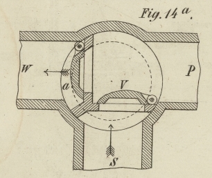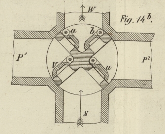 hin fortgedrückt, so erklärt sich das Spiel der Saugventile u, v eben so von selbst wie das der Steigventile a und b.