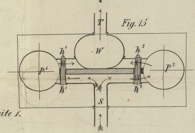 liegt mit der Dampfmaschine in einer Ebene und zwar an der Stelle, wo man darüberdaüber in unserer Skizze den Windkessel d sich
