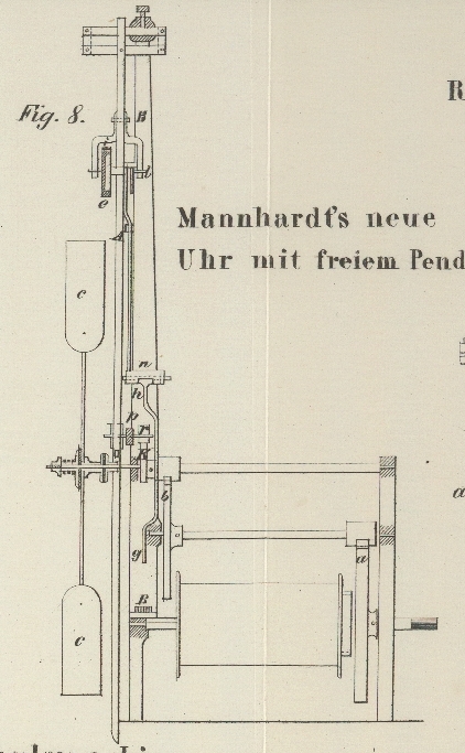 | Titel: | J. Mannhardt's neue Uhr mit freiem Pendel. |