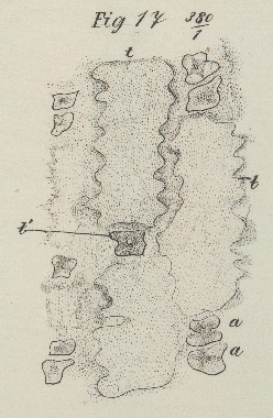 Membranen der langen Zellen; a verkieselte Zwergzellen,