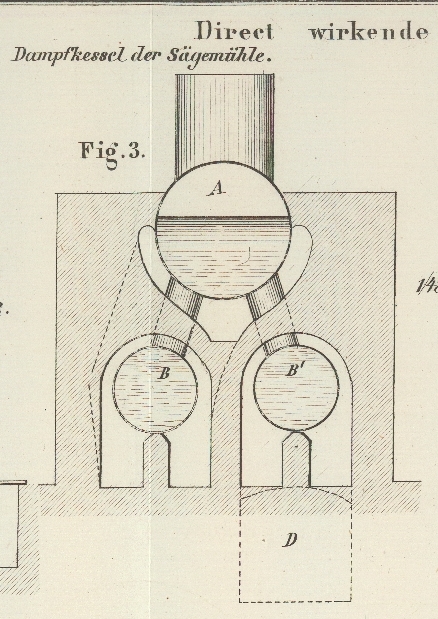 Wir haben den Kessel, dessen Dämpfe nach dem bereits Erwähnten das Doppelgatter und