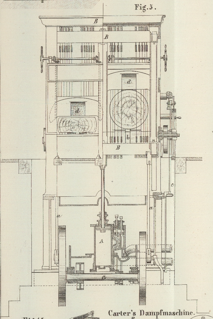C, zur Regulirung der Bewegung, ist unter dem Cylinder