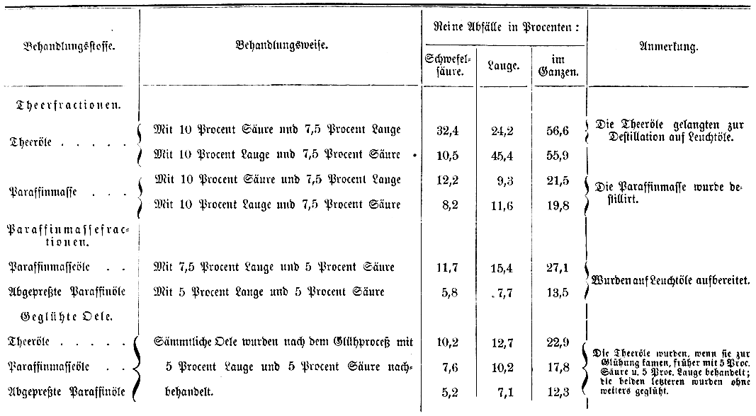 Paraffinöle; Die Theeröle wurden, wenn sie zur Glühung kamen, früher mit 5 Proc.