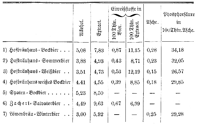 gewidmet und von fünf verglichenen Bieren die vollständige Aschenanalyse