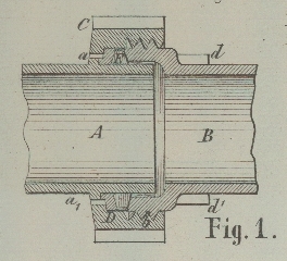 geschoben werden, alsdann das Rohr B über A. Die Mutter C wird auf b aufgedreht und mit Hülfe eines Schraubenschlüssels