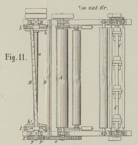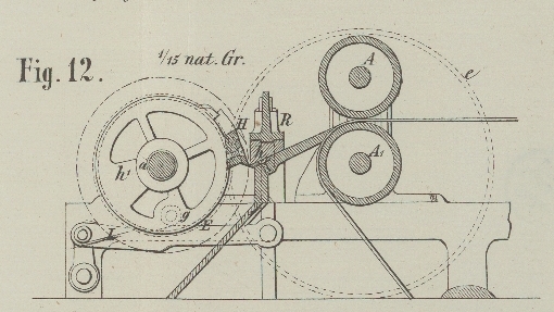 Ist die nöthige Bogenlänge geliefert, so wird die Drehung der Zuführwalzen