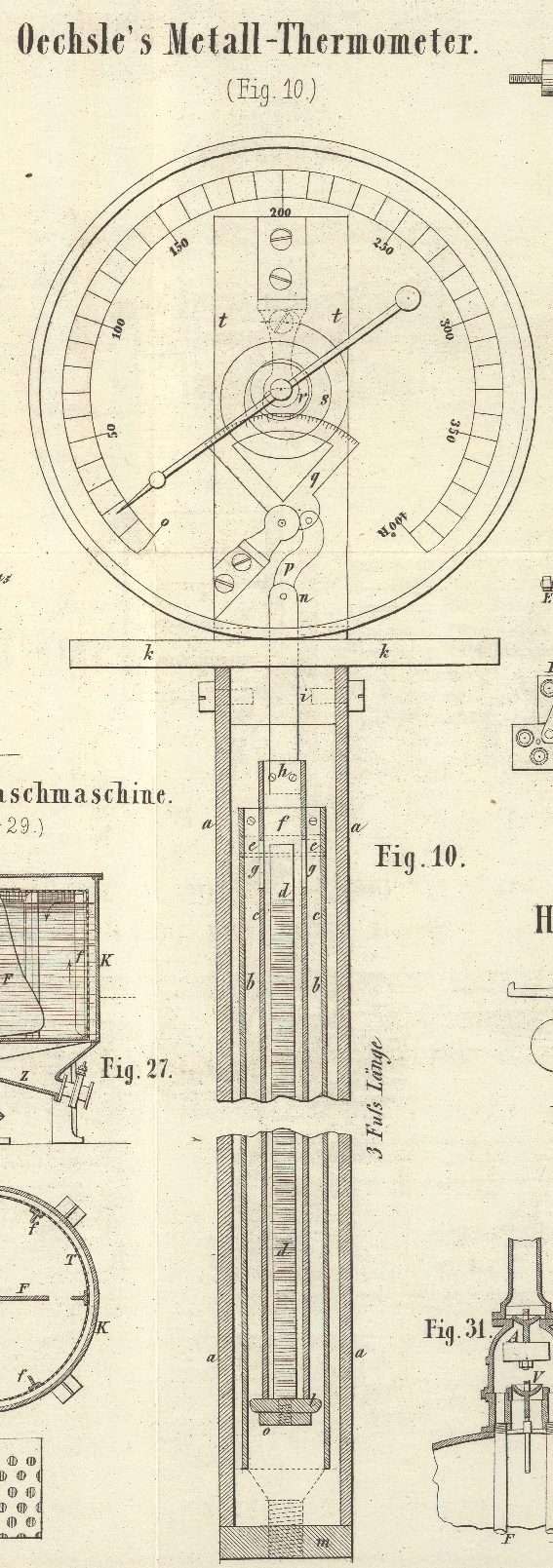 Titel: Metall-Thermometer von Chr. Oechsle, Mechaniker in Pforzheim (Baden).