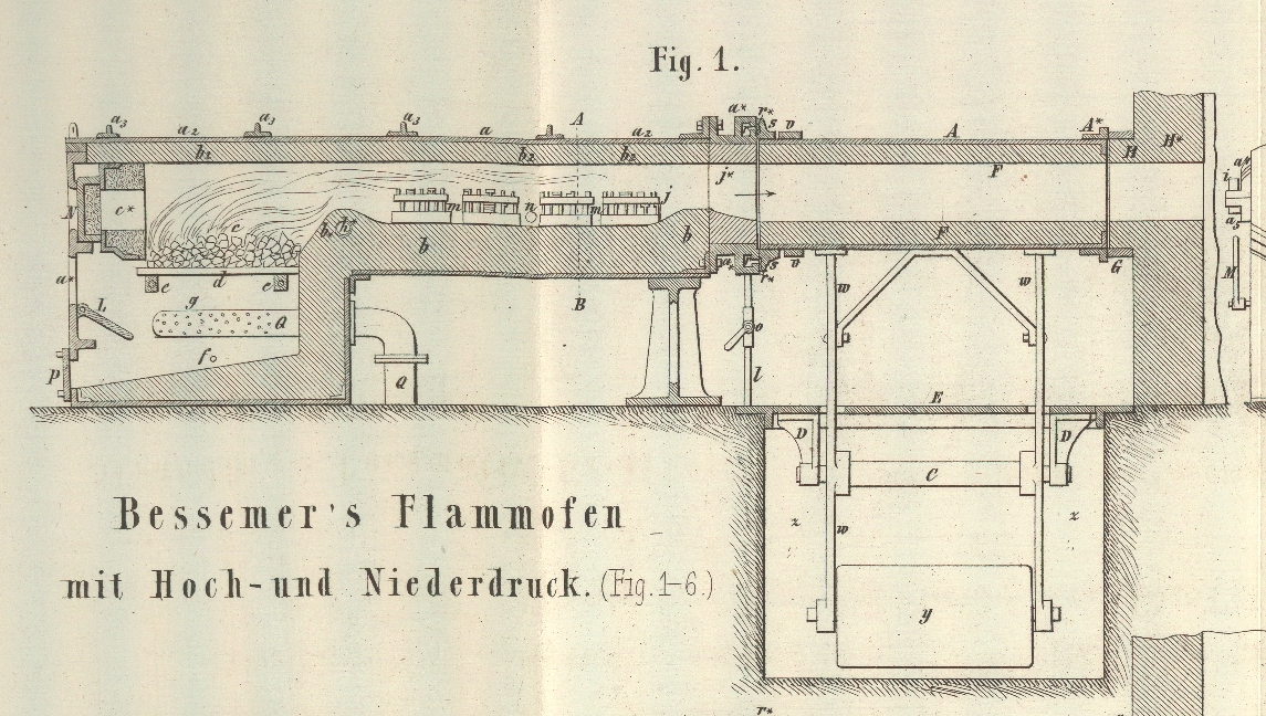 beigegebener Abbildung beschrieben und kürzlich Bessemer's Anwendung dieses Constructionsprincips auch auf die Converter