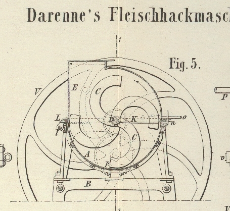 | Titel: | Fleischhackmaschine von J. A. Darenne in Paris. |