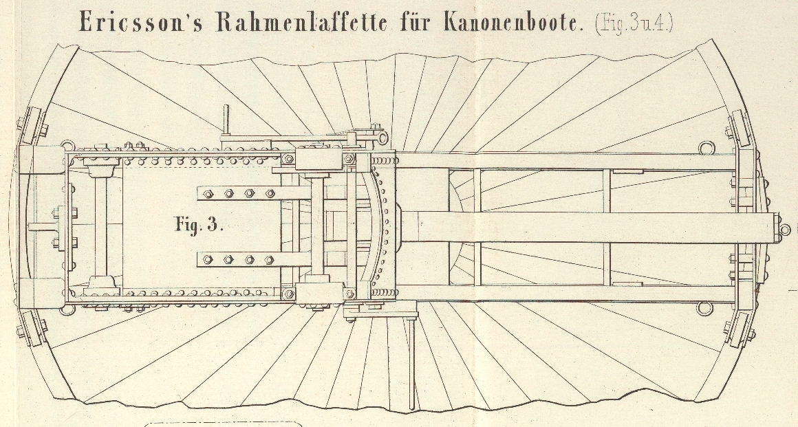Ericsson's Rahmenlaffette für Kanonenboote.