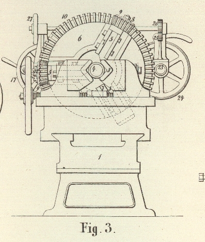 vorgeschoben. Aus diesem Grunde gleiten die Stahlhalter 7 in radialen Nuthen auf der