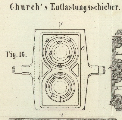 | Titel: | Entlasteter Dampfschieber und Kolbenconstruction von W. Church. |