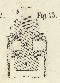 Zwischen dem Ring E und den Scheiben D wird Mennige, Cement oder irgend ein anderes