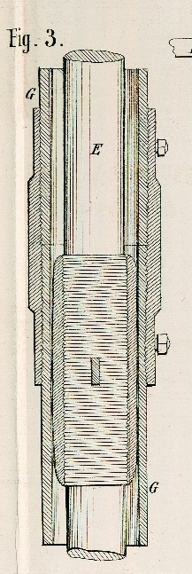 untere Kolben D ist an einer massiven Stange E befestigt, welche durch die hohle Stange G des oberen Kolbens F