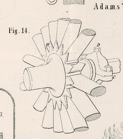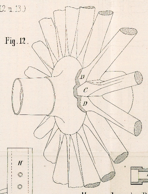 nebenliegenden Speichen D. Die Zapfen der letzteren