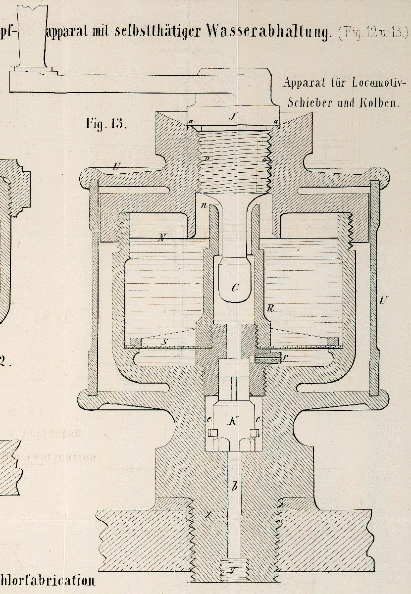 herunterfällt, so construirte ich als neu hinzugefügte Verbesserung den Körper K, welcher selbstthätig wohl den Dampf aber nicht das