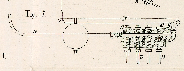 17) verschließen jene Oeffnungen, durch welche die Ventile C in das Gehäuse A