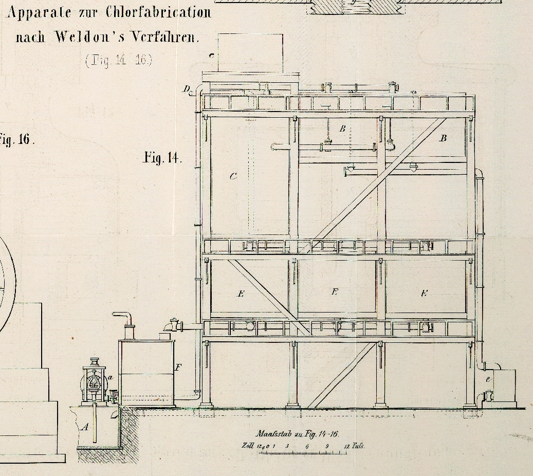 Apparate zur Chlorfabrication nach Weldon's Verfahren.