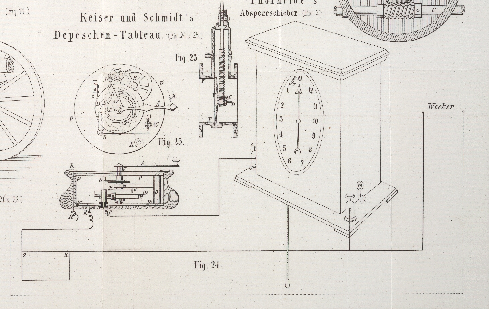 24 und 25 dargestellte Apparat, von uns Depeschentableau benannt, besteht aus