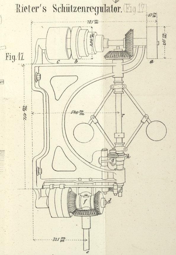 Geschwindigkeit der Regulirungswellen d und e beliebig verändert werden. Nach Bedürfniß kann die