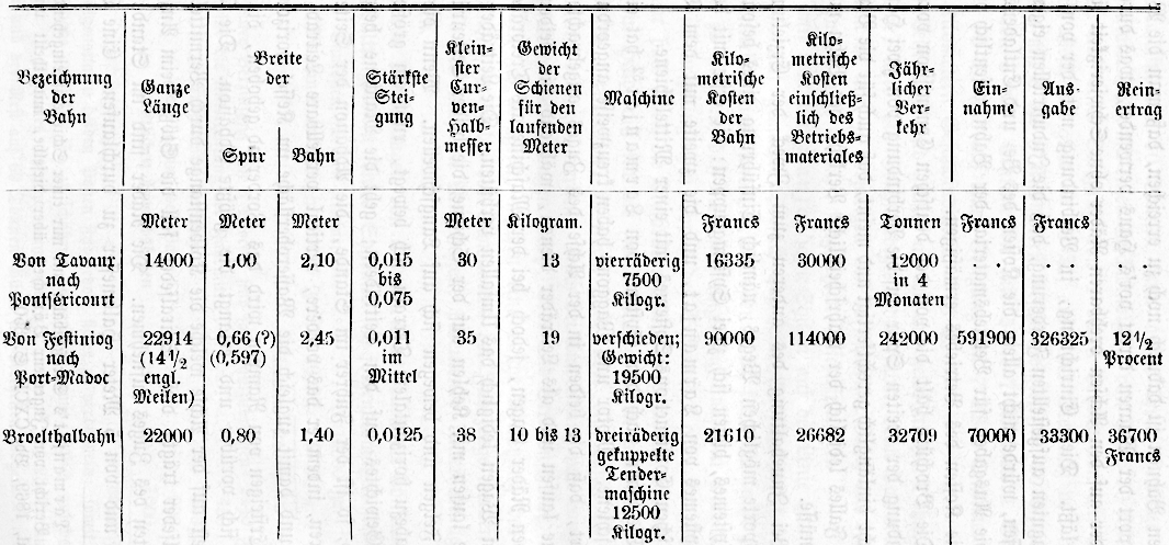 schmalspurigen Bahn, die Unterhaltungskosten der ersteren jedoch bedeutend höher
