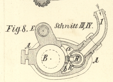 In einem aus Bronze hergestellten Gestellstück A, Fig. 6 bis 8, befinden