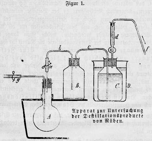 und ich habe schließlich dieselbe einem geräumigen Becherglas D einverleibt, um sie nöthigenfalls zu kühlen. Dabei wurde das erwärmte
