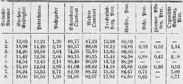 ursprünglichen Saftes 16,00, jene des ausgelaugten 2° Saccharimeteranzeige,