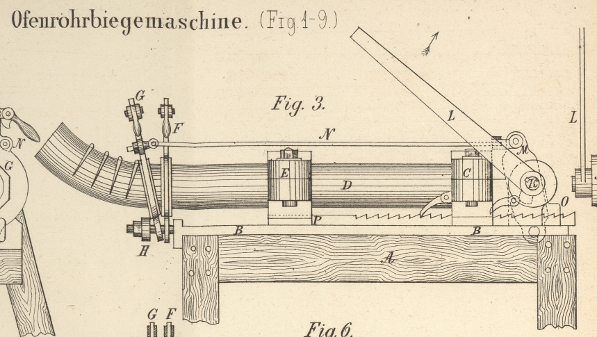 Falcke, Beschreibung der Ofenrohrbiegemaschine.