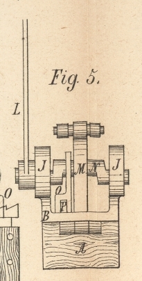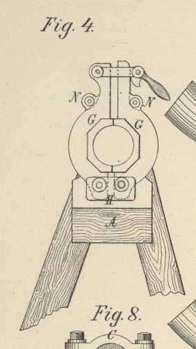 Unterstützung findet dieser nur an einem Ende festgemachte Dorn in dem Stücke E, welches dem Ständer C