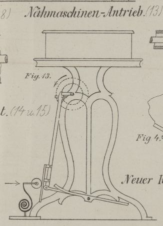 Construction (an einer Wheeler und Wilson-Nähmaschine) beseitigt. Es wird, wie in Fig. 13 angedeutet ist,