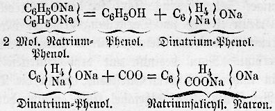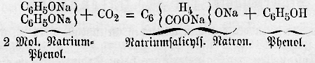 Molecül Kohlensäure sich in ein Molecül Natrium-Phenol einschieben, und es