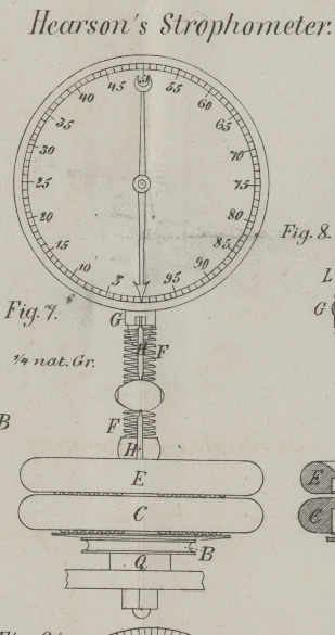 Die Spiralfeder F umgibt die Stange A und trennt das Schwungrad E von dem Ring G, der ebenfalls frei beweglich