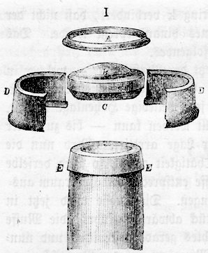 und Flaschenmündung so verdichtet, daß die halbrunden Kapselseitentheile D um B und um den