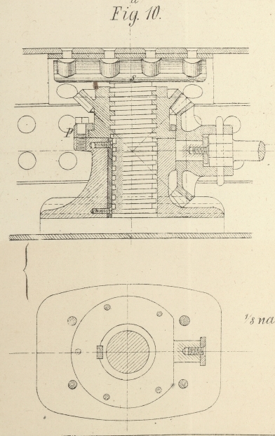 Die Anordnung des Nietambosses, wie er z.B. zum Nieten des Querstoßes im Schnitt cd der Raa eingezeichnet ist, wird durch Figur 9 und